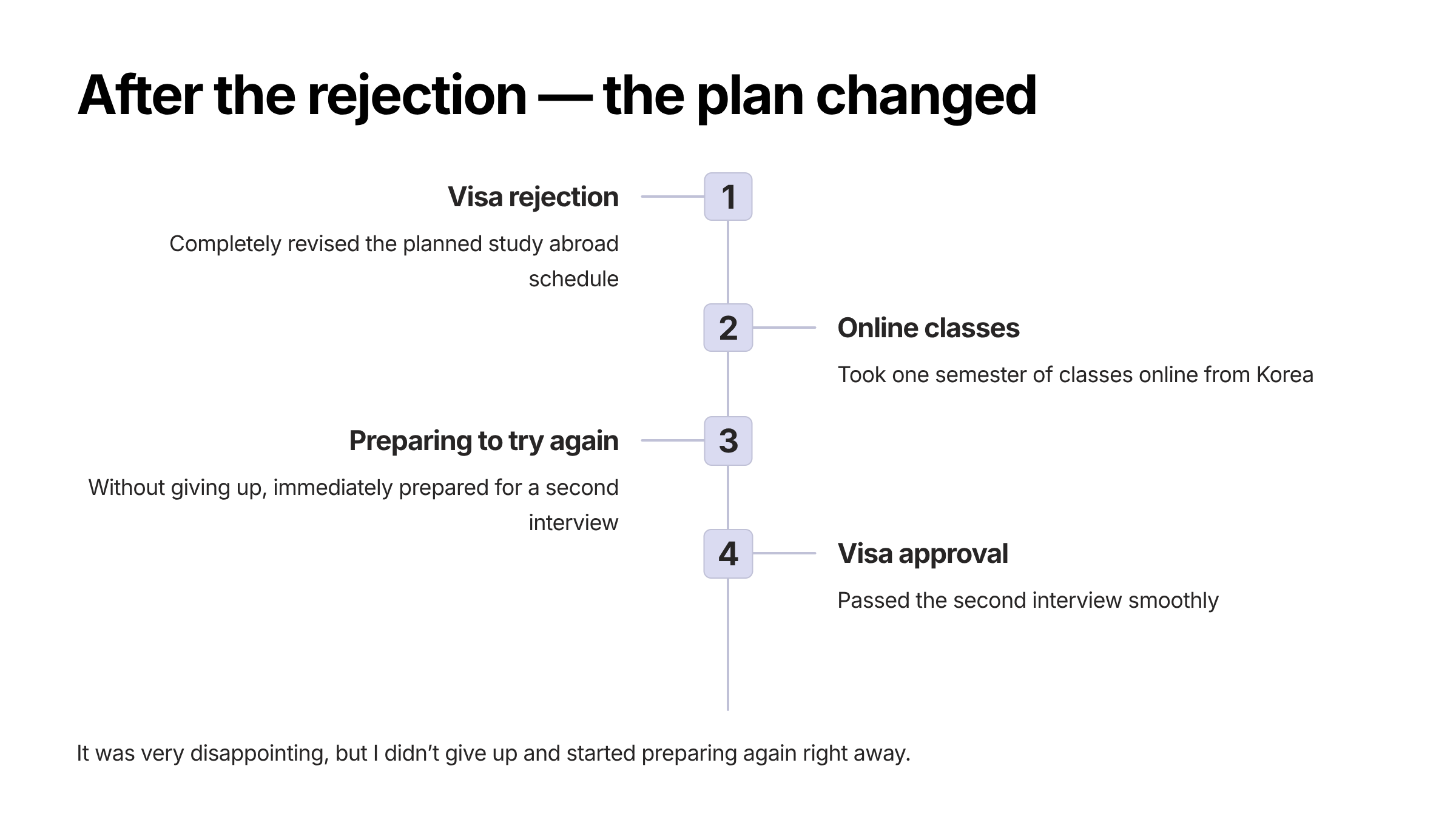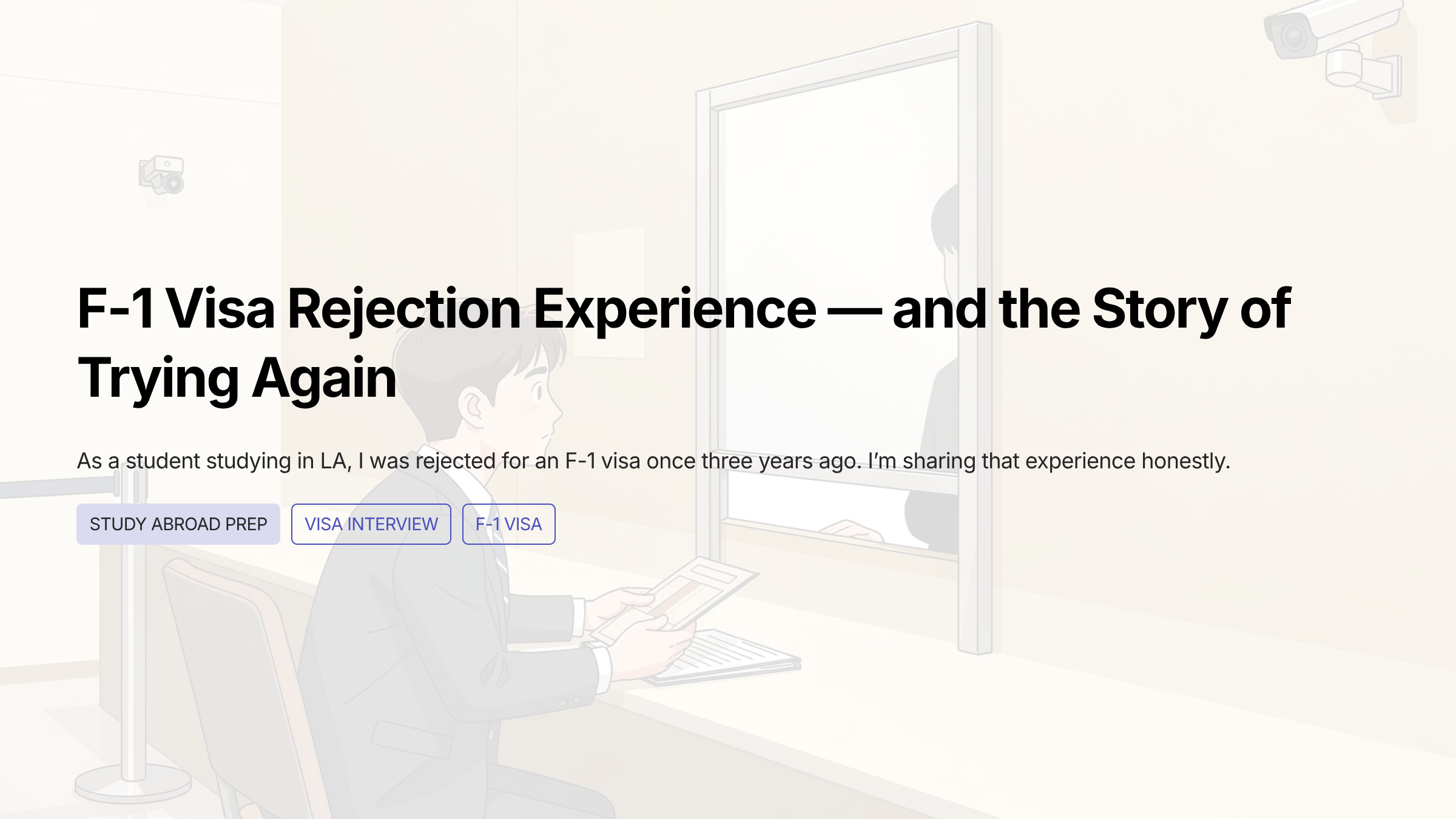 I’m currently studying in LA, but about three years ago, I actually got my F-1 visa rejected once. I wanted to share that experience and how things worked out afterward.